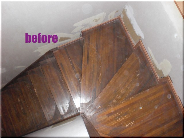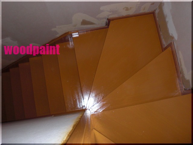 デコラティブペイント木目風ペイント施工 小金井市 住宅室内階段・Before 小金井市 住宅室内階段・After 小金井市 住宅室内階段・Before 小金井市 住宅室内階段・After 小金井市 住宅室内階段 デコラティブペイント(木目風)仕上げ 【施工内容】 既存はオイルステインで着色しクリア(ニス)仕上げでした。 既製品の枠などを入れ替えたので、その枠の色に合わせて階段を木目風にしたいとご依頼があり 木目風ペイントで施工しました。 下地が剥がれていたり、だいぶ傷んでいたので下塗り(白)を2回入れてから、木目を描いていきました。 施工期間 2日間